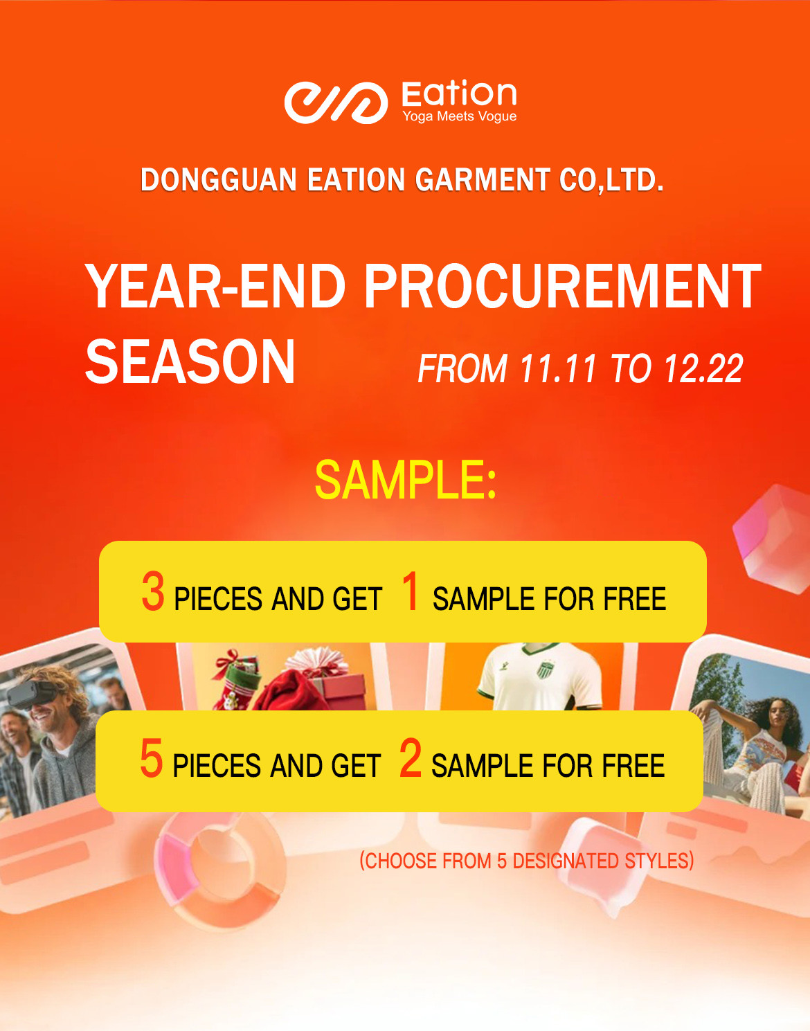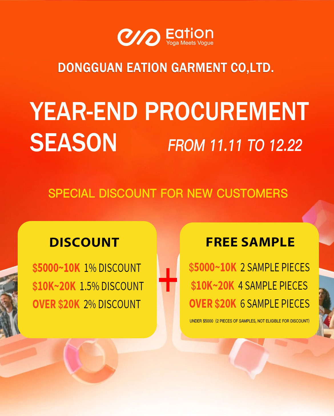 Dongguan Eationwear is excited to announce their Year-End Procurement Season, running from November 11th to December 22nd! This exclusive event offers fantastic benefits to new customers, including discounts and free samples on a variety of yoga wear and activewear. Whether you're looking to stock up on high-quality garments for your business or get a great deal on stylish athletic wear, this is an opportunity you don’t want to miss!
